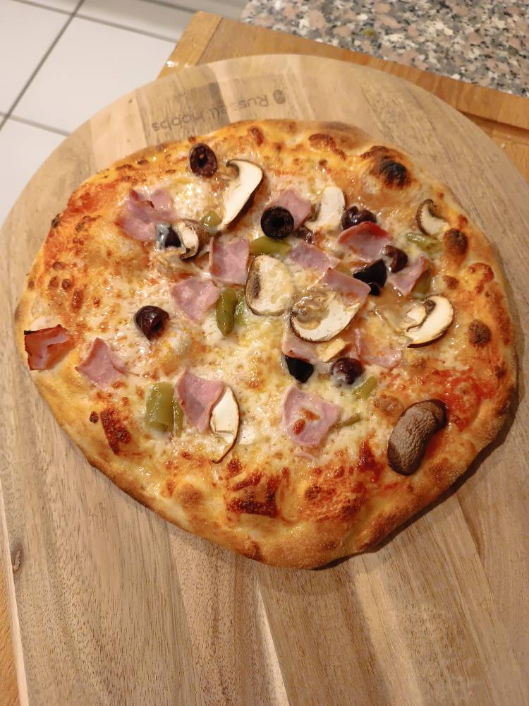 Heute morgen wurde von meinem Pizzaiolo ein Teig angesetzt und Abends gab es dann Pizza mit Schinken, Pilzen, Mozarella