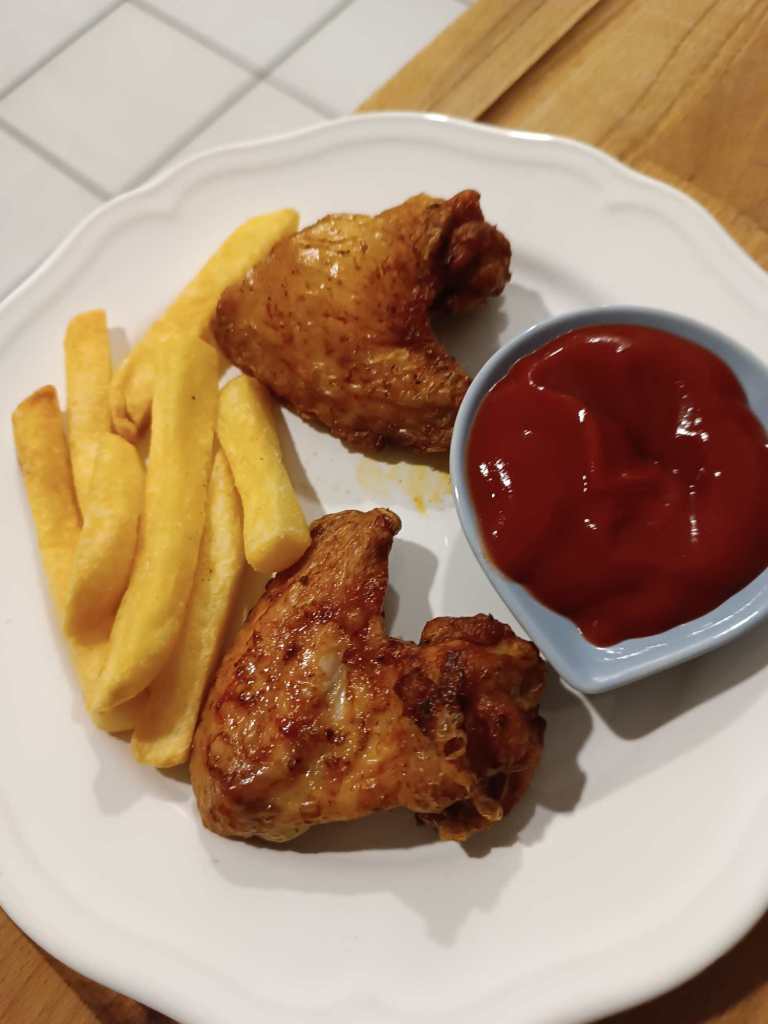 Der Koch war mit dem jetzigen Airfryer nicht zufrieden und hat einen neuen gekauft. Sieht gut aus (das Auge airfryt ja mit). Also gibt es heute nur Fastfood aus dem Teil: Chicken Nuggets, Jalapeno Teile, Arrancini, Pommes, Chicken Wings