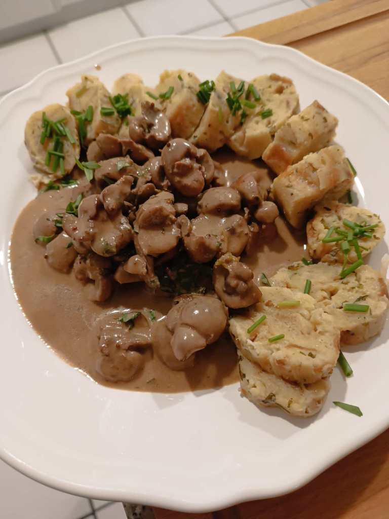 Weisser Burgunder, zum Essen Cotes du Rhone und Bier.