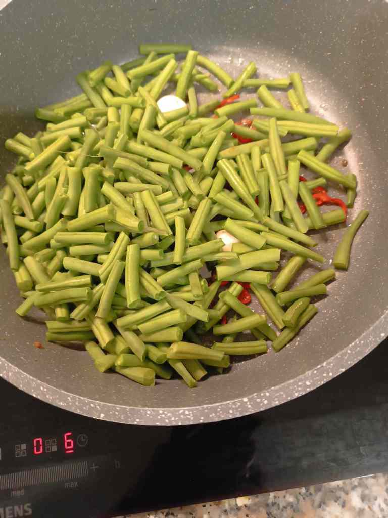 Wir quatschen ein bisschen, dann haben wir Hunger und kochen, es gibt Spinat und Kartoffeln.
