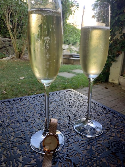 Die Gäste Ginger Ale und Wasser, ich Dornfelder und Pinot Grigio