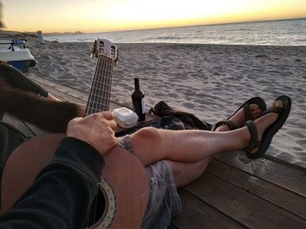 Ichnusa und Rotwein, letzteren am Strand mit Musik