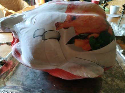 Nun kommt der Truthahn aus dem Tiefkühler, damit er bis morgen aufgetaut ist