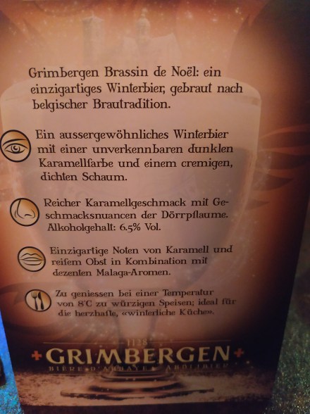 Weihnachtsbier. Die Beschreibung liest sich wie in einer Weinkarte. Bier war lecker, die 6,5% schmeckt man nicht, die Aromen aus der Beschreibung aber auch nicht