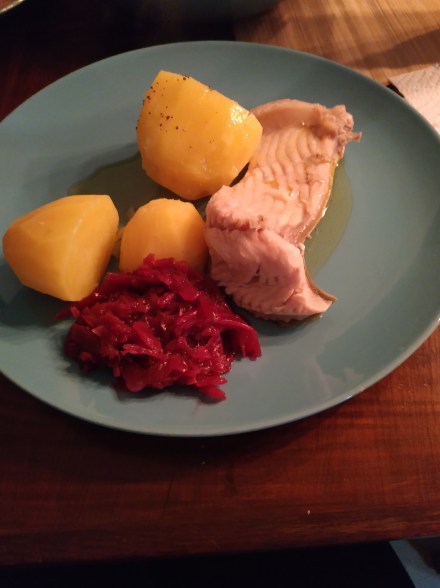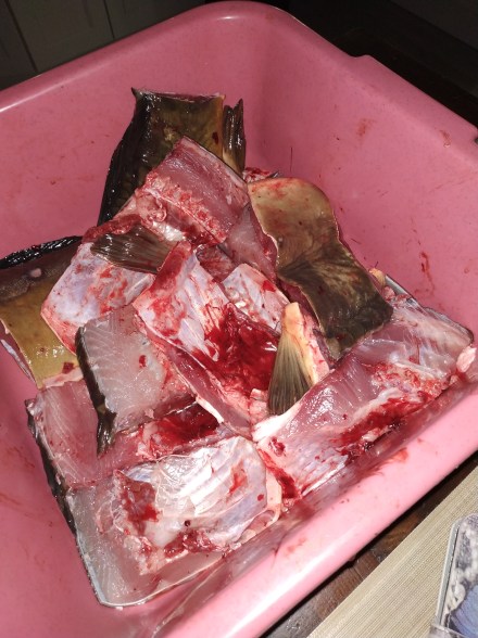Die heutigen Gastgeber haben einen Weiher mit Karpfen drin, somit Karpfen, der bei meiner Ankunft geschlachtet wurde