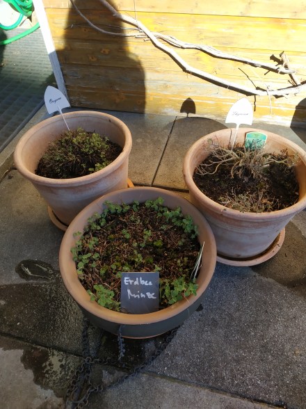 Blätter weg, Hortensien frei geräumt, Kaffeesatz verstreut, Kräuter zurecht geschnitten