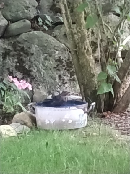 Eine Amsel, die badet