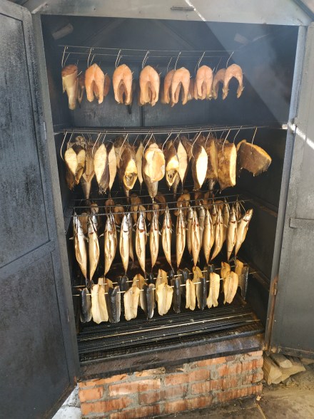 Räucherfisch (Makrele, Hering, Dorsch) ganz frisch aus dem Räucherofen