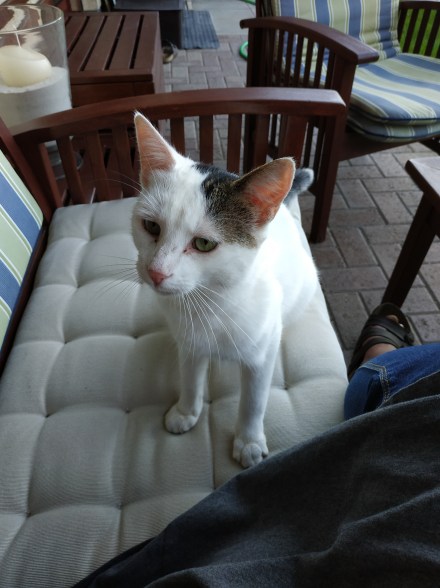Als hätte sie es geahnt, dass es Fisch gibt 😉, das Kätzchen ist wieder da.