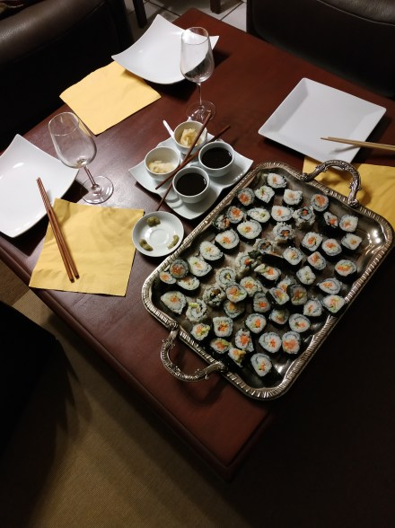 Der junge Herr P., der 2 Tage meinen Bus im Elsass ausprobiert hat, wünschte sich Sushi. Kann ich, kriegt er