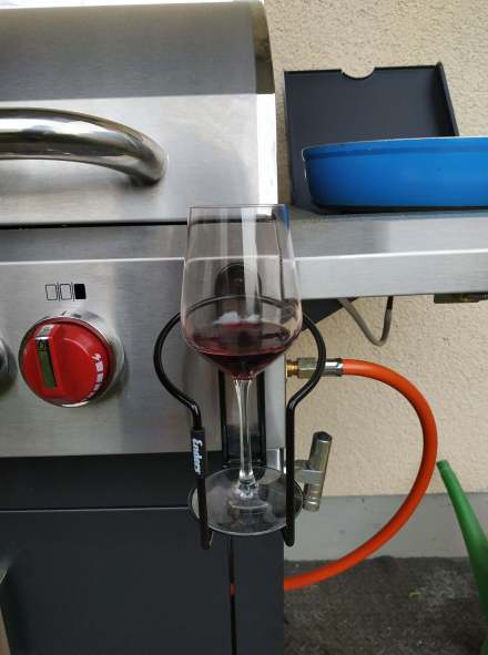 Der Bierflaschenhalter am neuen Grill funktioniert auch mit Wein