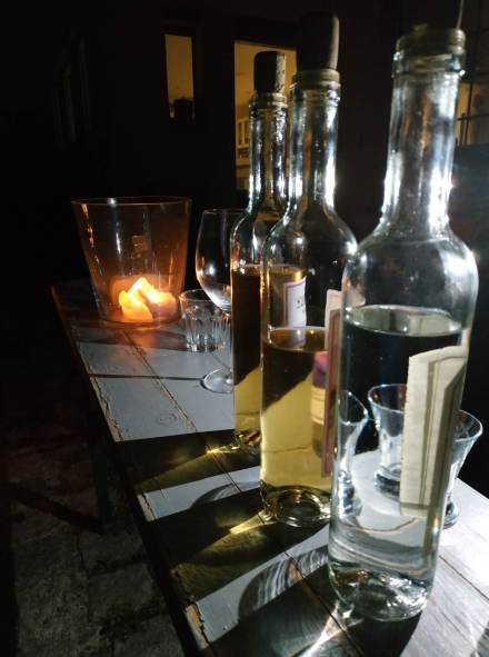 Ungarische (dort selbstgebrannt) Schnäpse: Zwetschge, Aprikose, Birne.