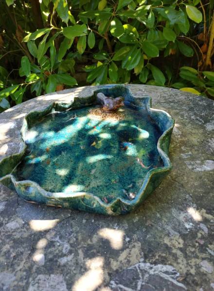 Die, bei der Schwiegermutter abgestaubte, Vogeltränke aufgebaut