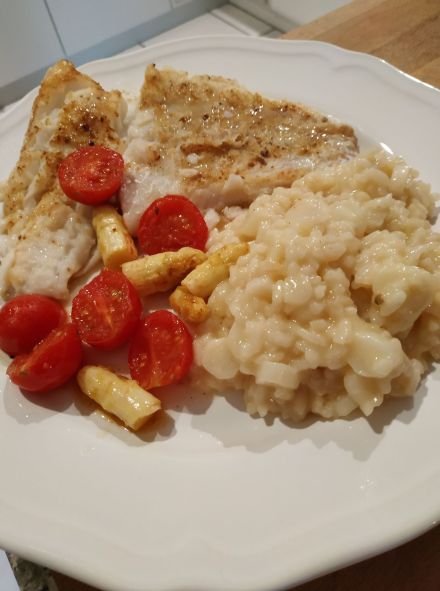 Spargel Risotto mit Kabeljau