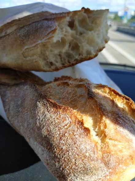 Zunächst trotte ich zum Waschhaus, die zwei grossen Hunde freuen sich lautstark, ich kriege fast einen Herzkasper.Zurück am Bus koche ich Kaffee, dazu gibt es einen Cremant und ein paar Teilchen