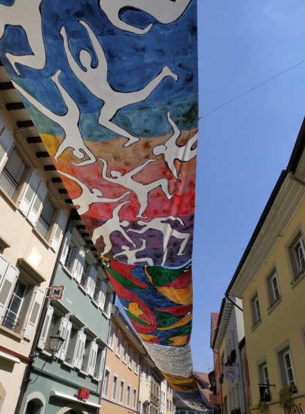 In Tiengen haben sie so Stoffbahnen über die Straße gespannt. Sah hübsch aus und man hatte auch noch Schatten