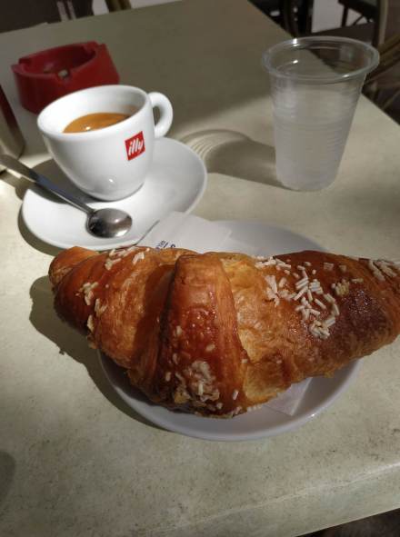 Ein Cornetto (mit lecker Marmelade drin) zum Kaffee in einer Bar in Vieste.