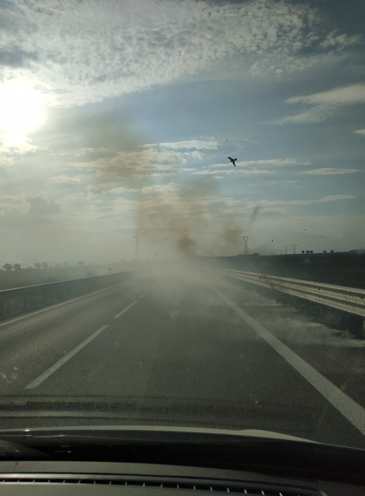 Auf dem weiteren Weg an Feldern vorbei, die abgebrannt werden, gern auch gleich bei der Strasse, man hat zu tun, durch den Qualm zu kommen