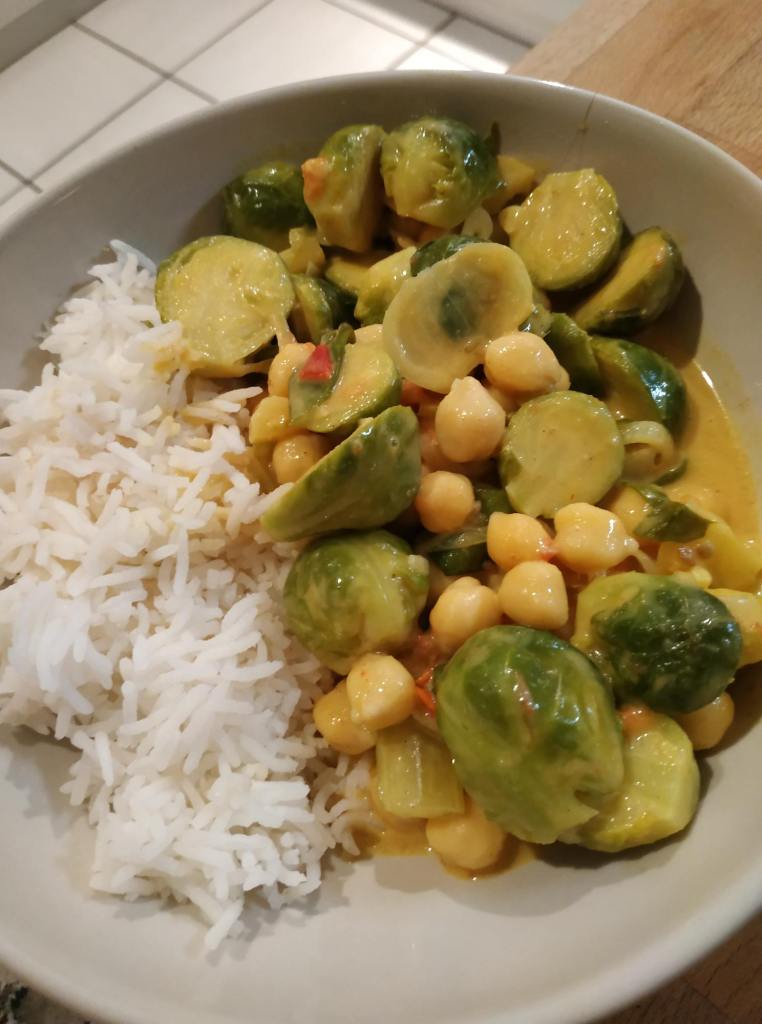 Ich weiss, viele mögen Rosenkohl nicht, ich aber schon und im Moment ist die beste Zeit dafür. Heute – Rosenkohl Kichererbsen Curry
