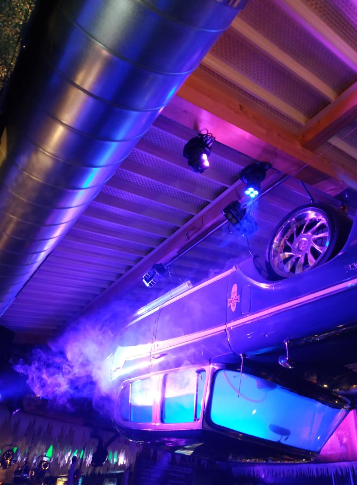 Bier in der Wochenendeinläutbierkneipe, obwohl erst Mittwoch. Aber man weiß ja nicht, wie lange man noch gehen kann. Dort hängt übrigens ein Auto an der Decke