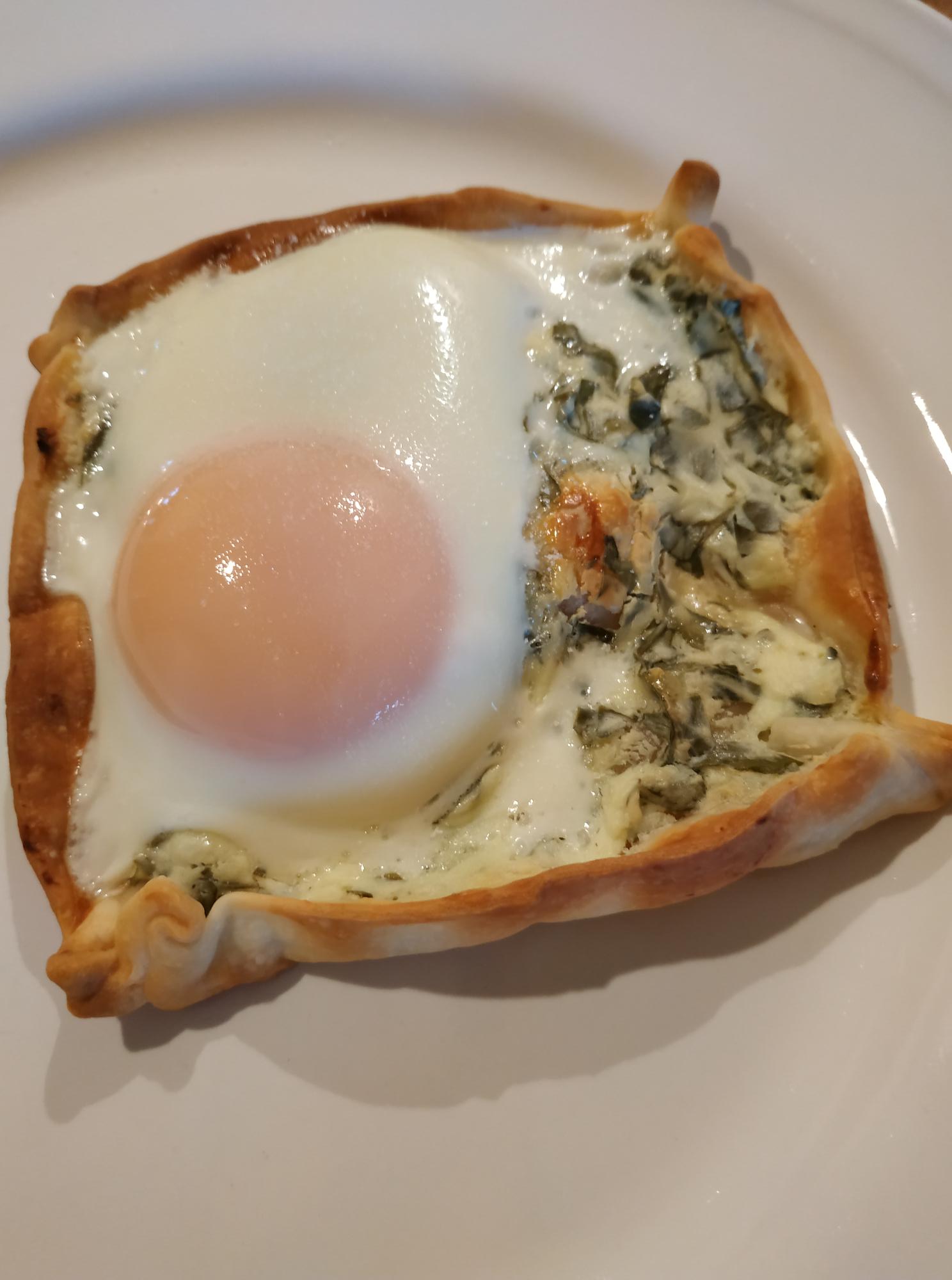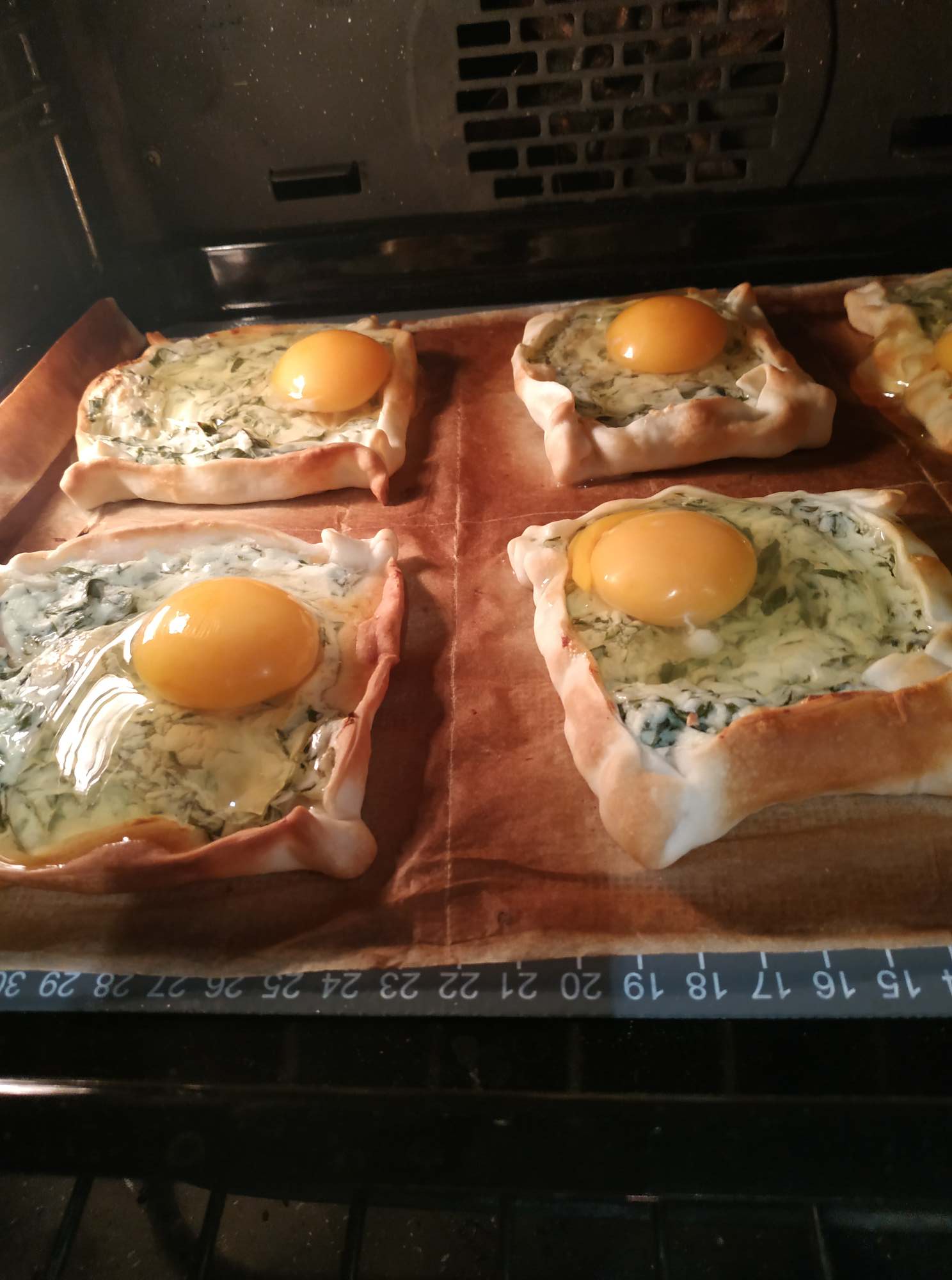 Der Bärlauch steht schon rum, habe ich welchen gepflückt und Bärlauchflammkuchen gemacht: Den Flammkuchen in Stücke geschnitten, Frischkäse mit Bärlauch drauf, am Rand ein bisschen hoch gebogen, im Ofen vorbackenund dann noch ein Ei drüber und nochmal in den Ofen