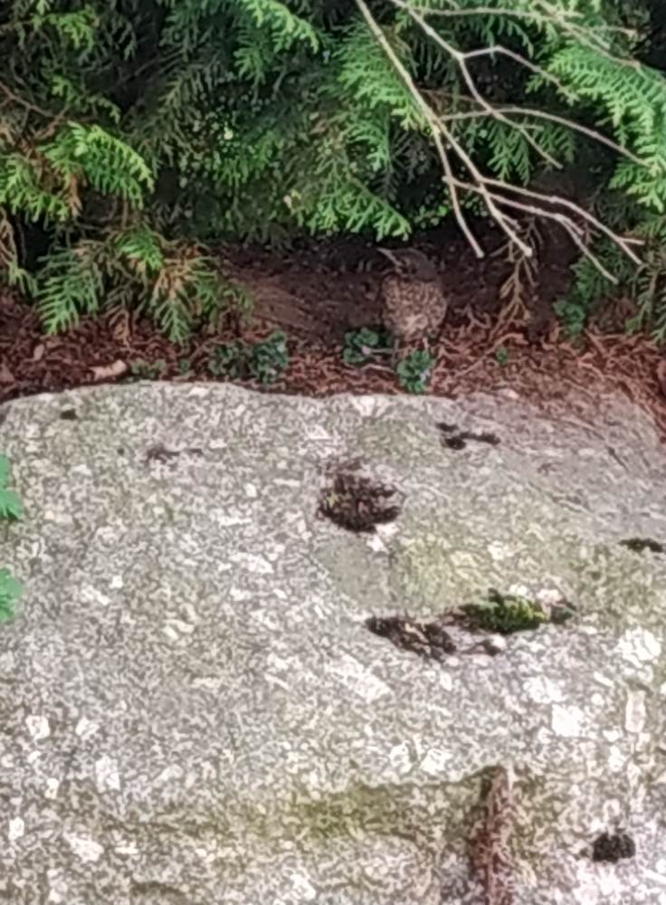 Die kleinen Amseln haben das Nest verlassen und warten in der Hecke, dass die Eltern füttern kommen. Ein bisschen können sie schon fliegen.