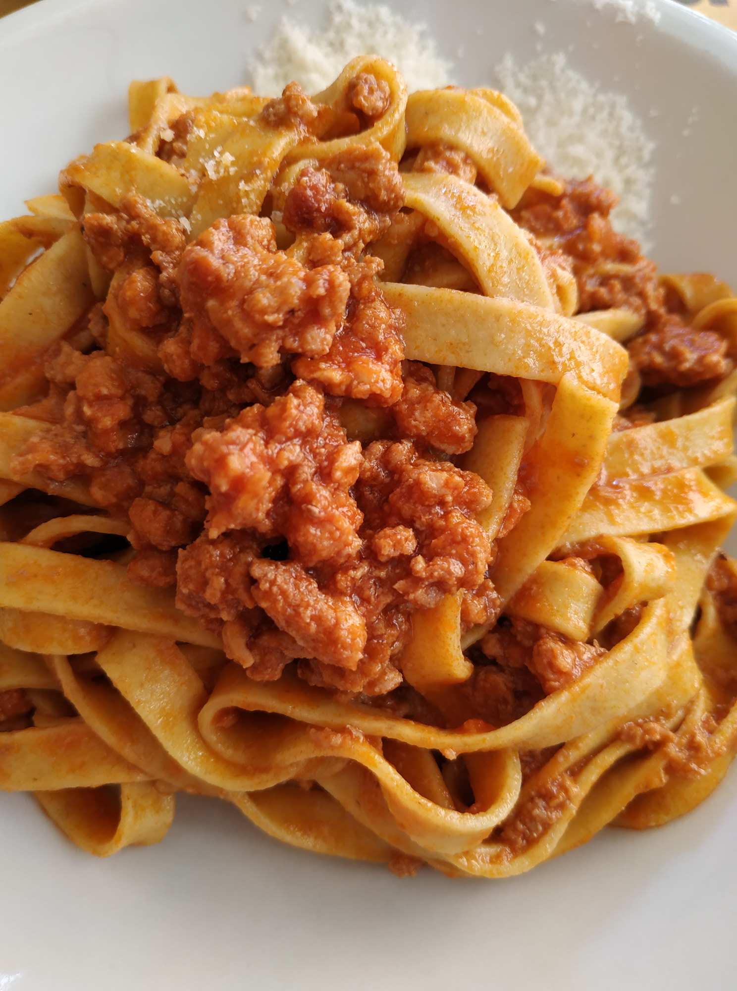 Später ganz klassisch Tagliatelle mit Ragu in einer Osteria mit lustigen Namen (Bären sind neben Elefanten meine Lieblingstiere)