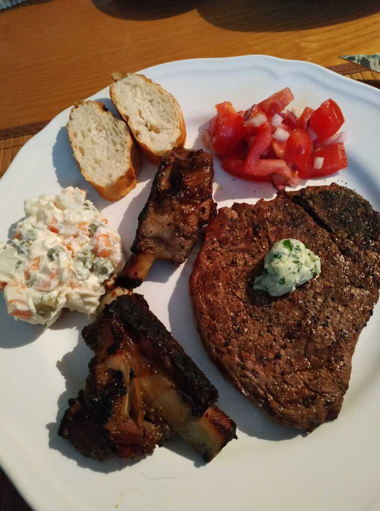 Steaks, Rippchen, Tomatensalat, Ensaladilla Russa