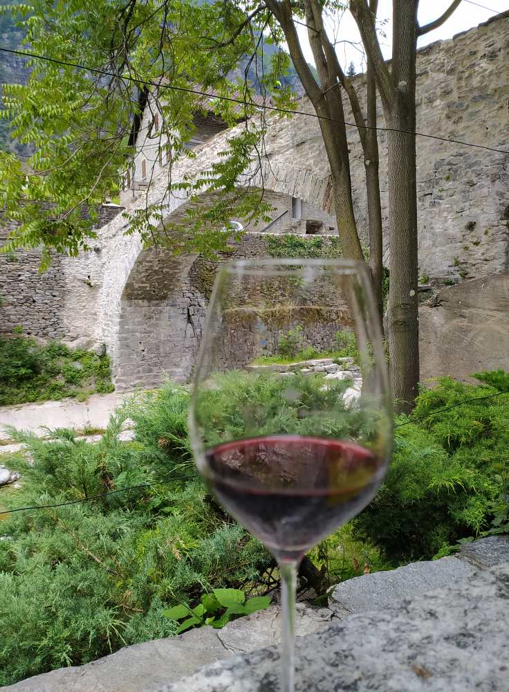 Merlot aus Giornico mit Blick auf Ticino und Brücke