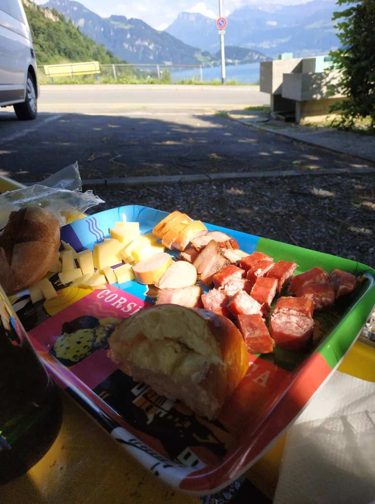 Picknickbox auffüllen lassen und dann einen Teil hoch über dem Urner See gegessen