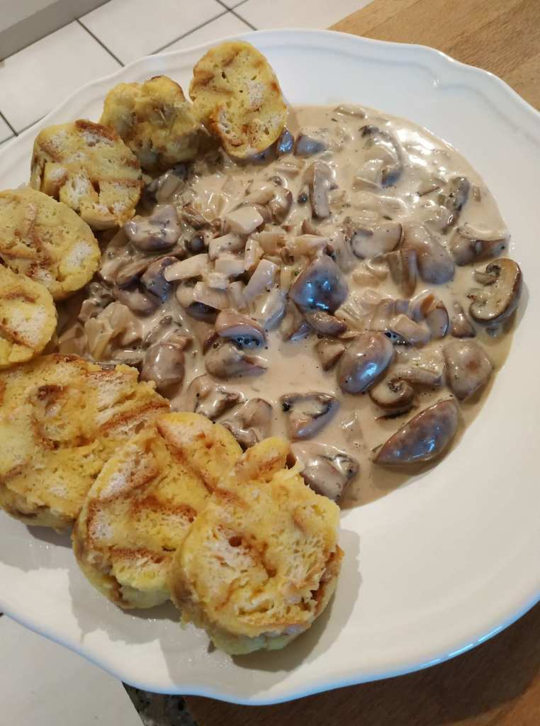 Rest Schweinebraten und Knödel. Dann – weil noch Hunger und eh weg musste – Räucherlachs (ein Gruss an VVN).