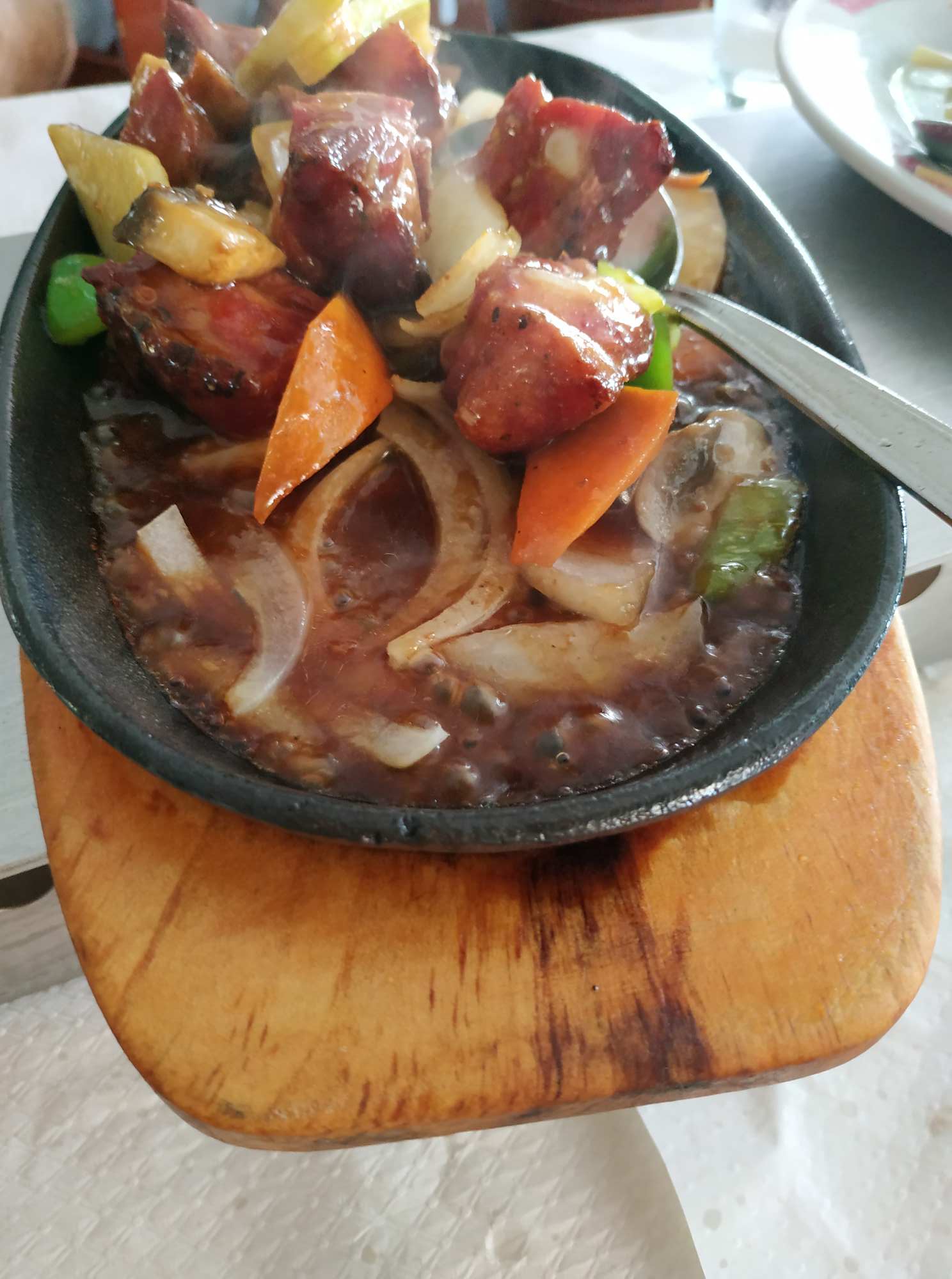 Beim Chinesen. Nicht das super Essen, aber eben Tradition – aus Gründen. Vorspeise war aber erstaunlich gut (Ente, die man in die Omelettes einwickelt, rechts oben zu sehen), bei den Hauptspeisen u.a. Rippchen (leider gepökelt, aber nicht schlecht)