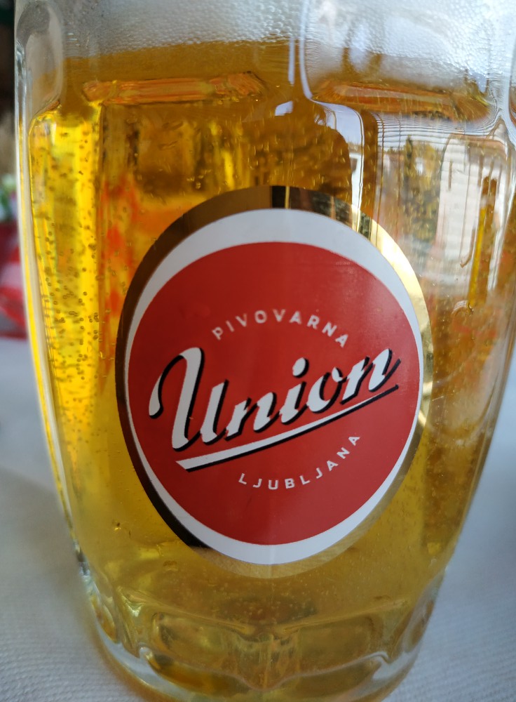 Zum Spanferkel slowenisches Bier, in Kroatien auf dem Campingplatz kroatischen Wein