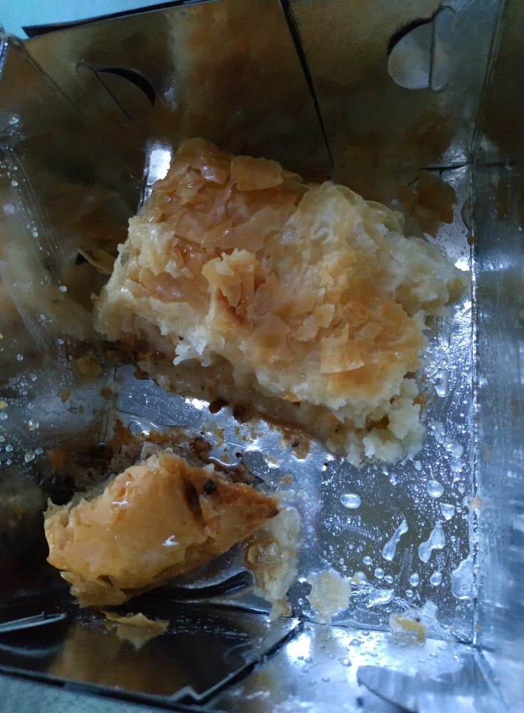 Süsse Teilchen vom Bäcker und Reste (Brot, Käse) aus dem Bus
