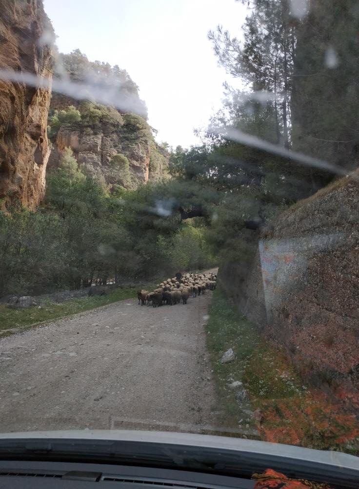 Heute morgen bei der Runterfahrt musste ich warten, bis die Schafherde vorbei war