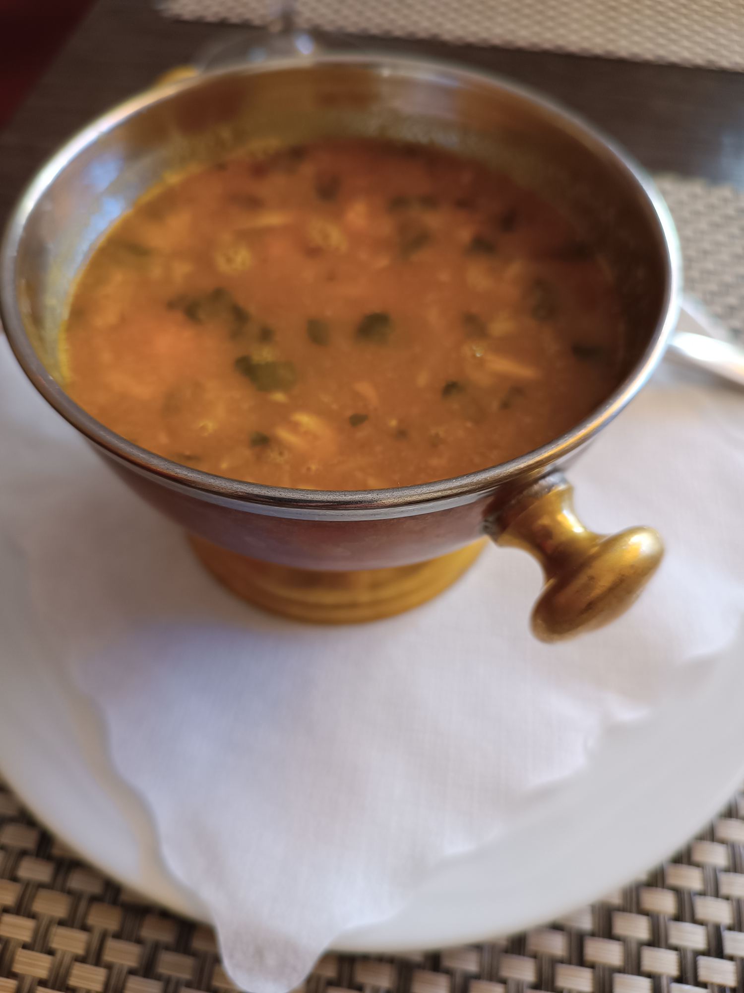 Malkatani – Linsensuppe mit Reis und Hähnchenfleisch. Lammcurry in Spinat