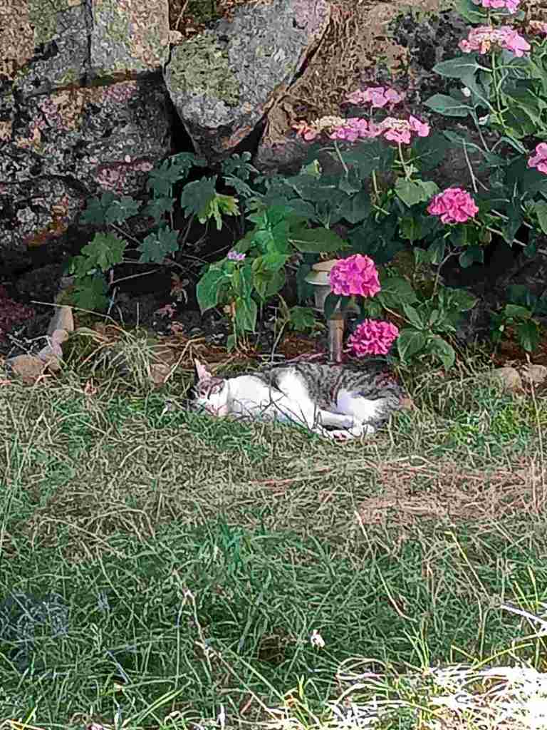 hat in der Hitze im Schatten eine Katze aus der Umgebung
