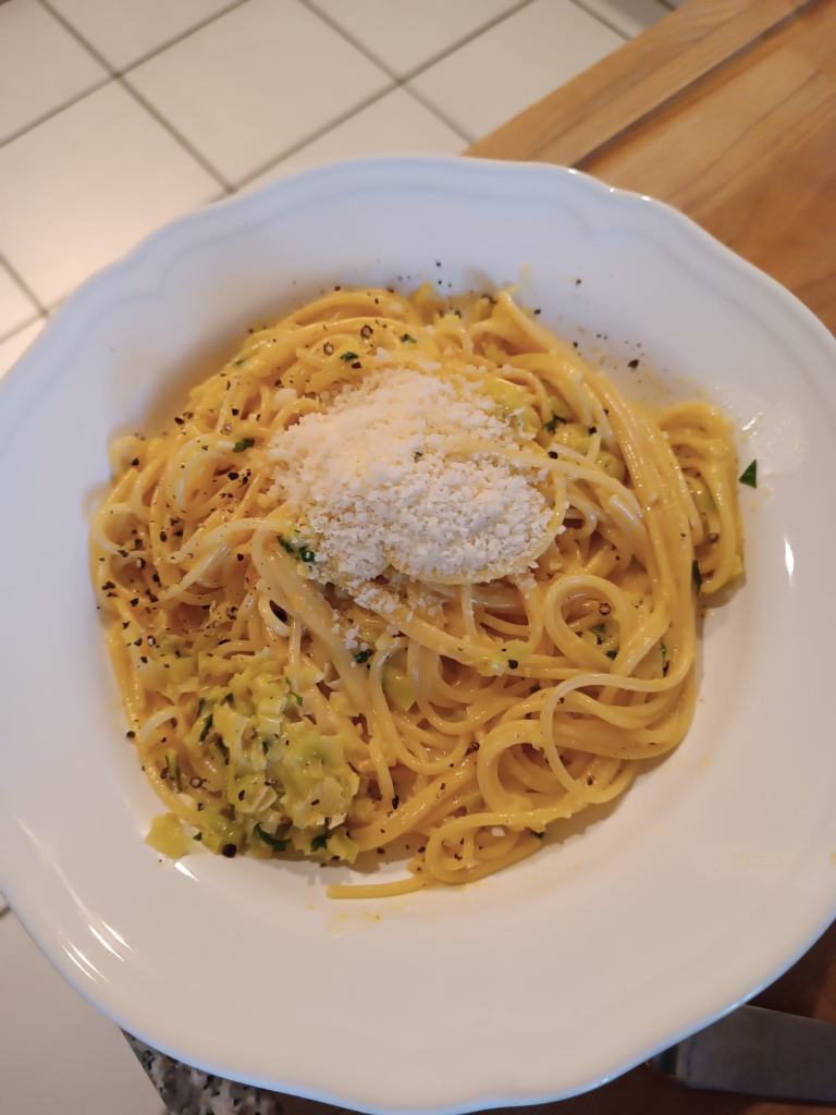 Ich hatte noch eingefrorene Wiener (also Würstchen, nicht österreichische Indigene) im Tiefkühler – Würstchengulasch und Spirelli.
