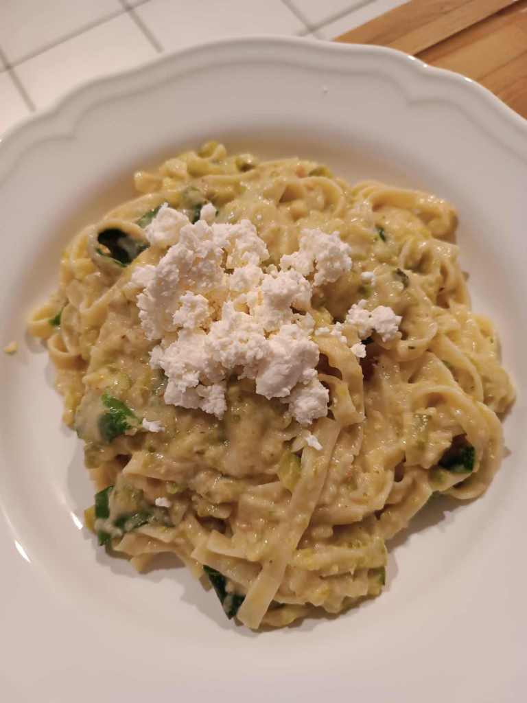 Fettuccine mit Zucchini, der Feta gehörte zum Rezept, hätte es aber nicht gebraucht