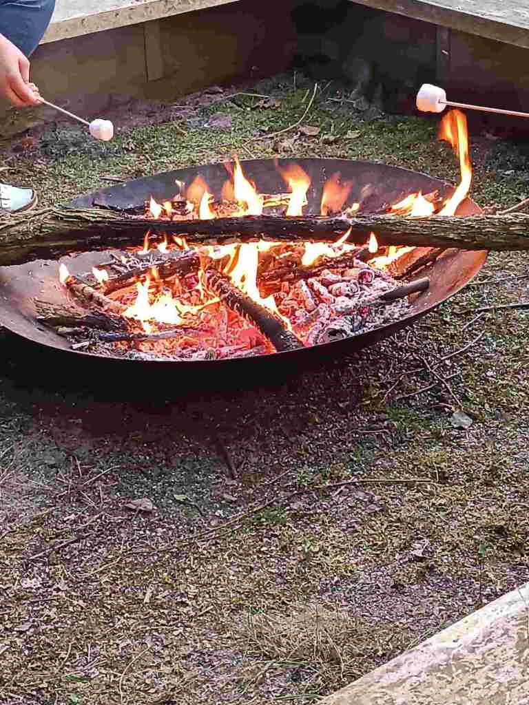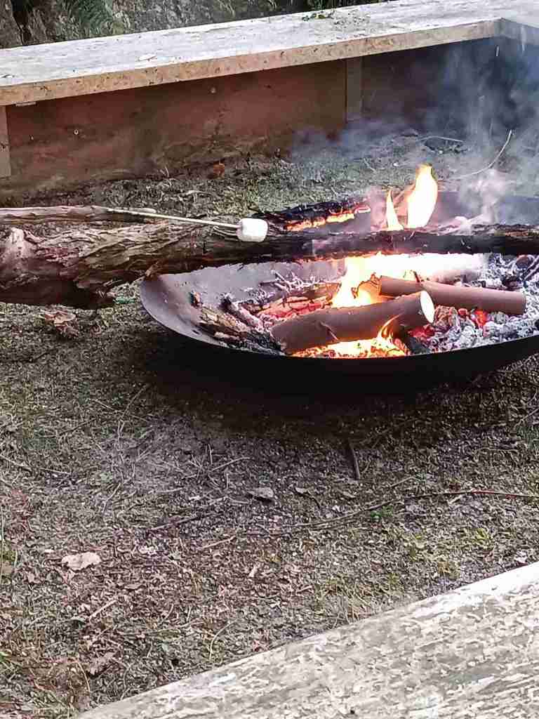 Am Feuer, nachdem die Kinder den Feuerplatz gejätet hatten.