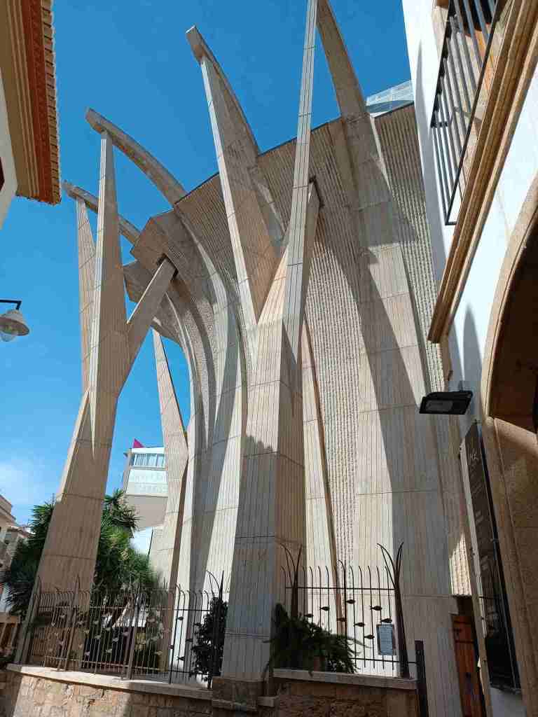 In Altea merkwürdige Installationen an den Häuserwänden, Kirche