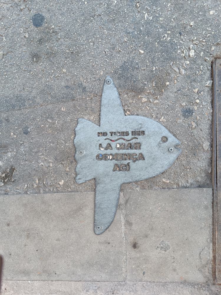 Plakette im Boden, Kirche, eine Figur (ich dachte erst, es wäre einer dieser Typen, die regungslos rumstehen und habe gerade Geld gesucht – bis ich merkte, es ist eine Statue. Ich habe laut gelacht)