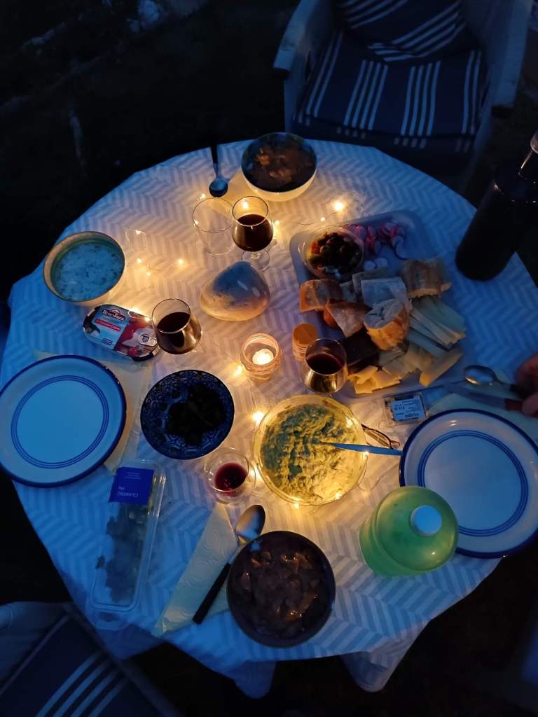 Auf der Terrasse gesessen, der Überraschungsgast spielte Gitarre, alle sangen – in den Sonnenuntergang und weit darüber hinaus, sehr weit, bis eben. Das letzte Lied war „you’ve got a friend“ von Carol King. Dazwischen Bob Dylan, Pink Floyd, Max Prosa, Mackefisch, Tina Turner, Gundermann, Tom Waits, Demmler … – weit gefächert