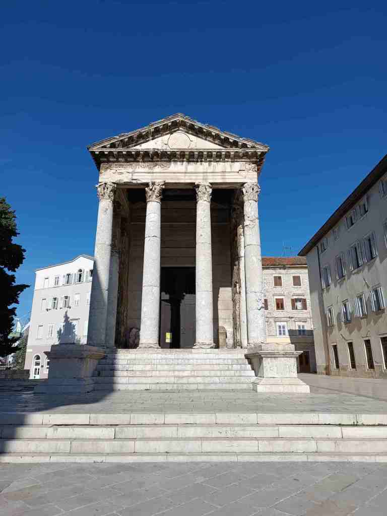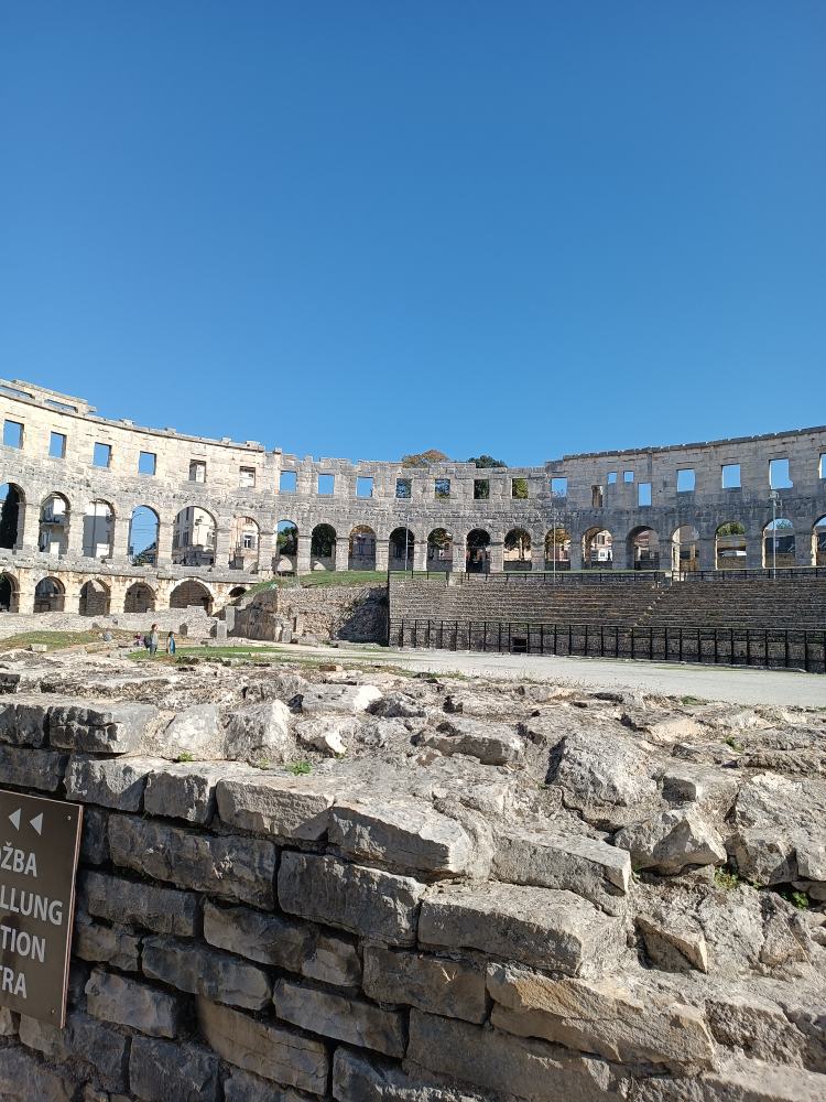 In Pula den Augustustempel und das Amphitheater. Am Kap gab es eine – leider geschlossene – Bar, echt schön. Einige Mitreisende haben im Meer gebadet, ich habe das von oben beobachtet. Hier sollte es auch Dinosaurier Fußabdrücke geben, habe ich aber nicht gefunden, dafür aber noch einen Cache.