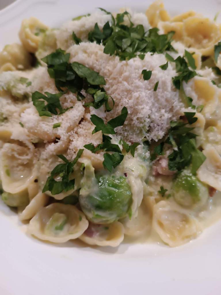 Frost hat auch was Gutes, es gibt wieder Rosenkohl: Orecchiette mit Rosenkohl ala Carbonara