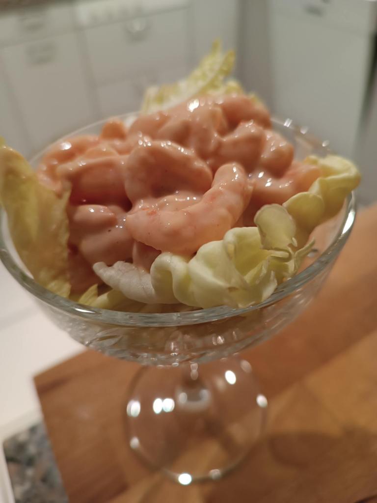 Garnelencocktail (so schön 70er 😉), Lachs auf Gurken/Meerrettich Risotto