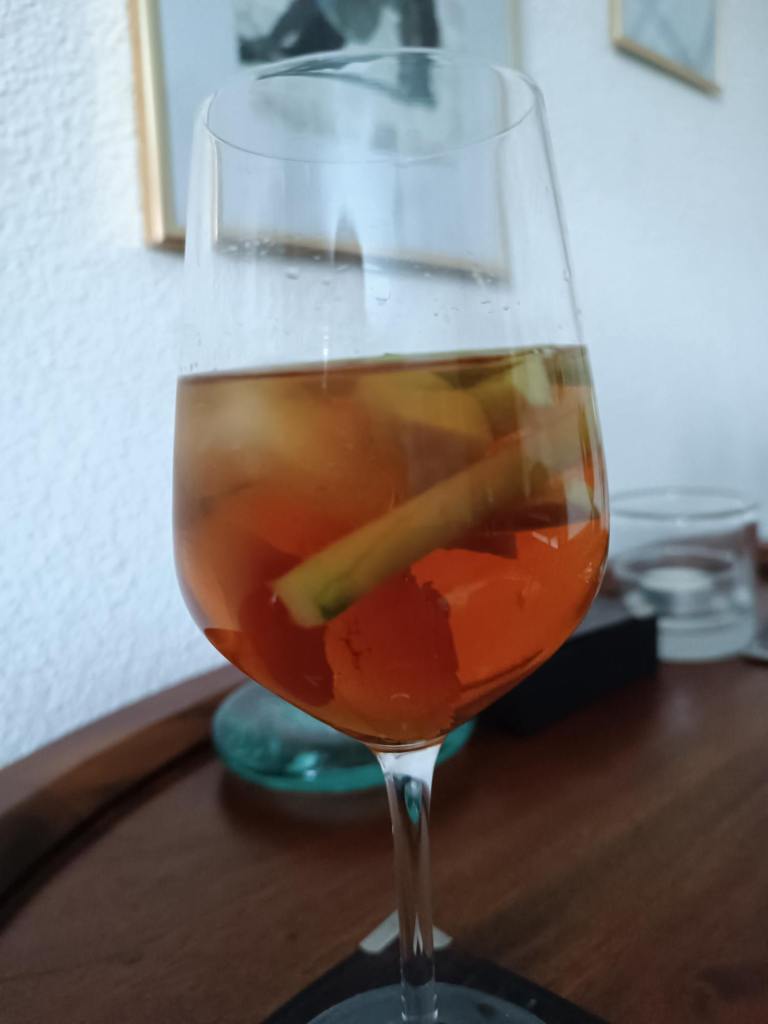 Cynar Cocktail (Cynar, Weisswein, Wasser, Gurke, Zitrone) – kann man machen, muss man nicht.