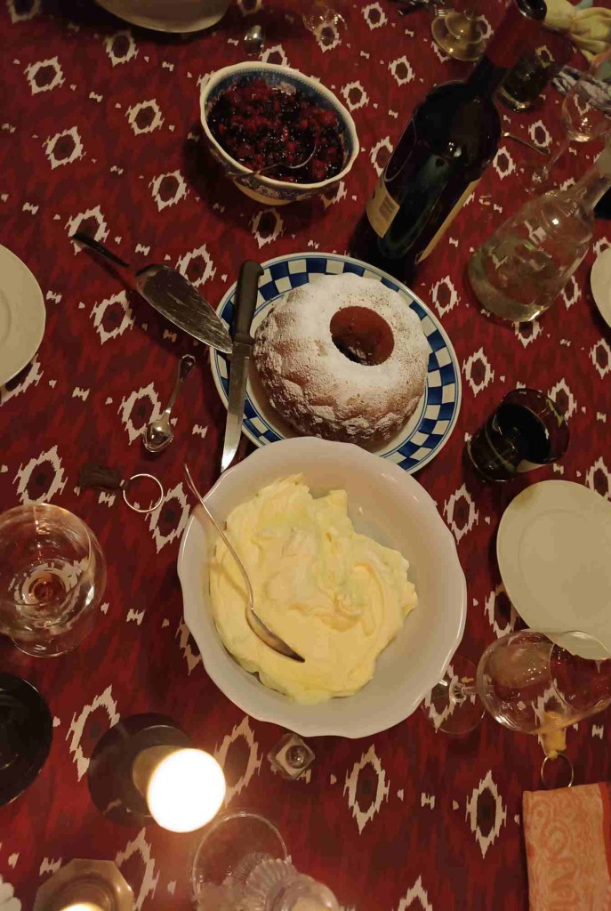 Truthahn, Kartoffelpüree, Gemüse, 3 verschiedene Saucen, zum Dessert – Mascarponecreme, Beeren, Gugelhupf