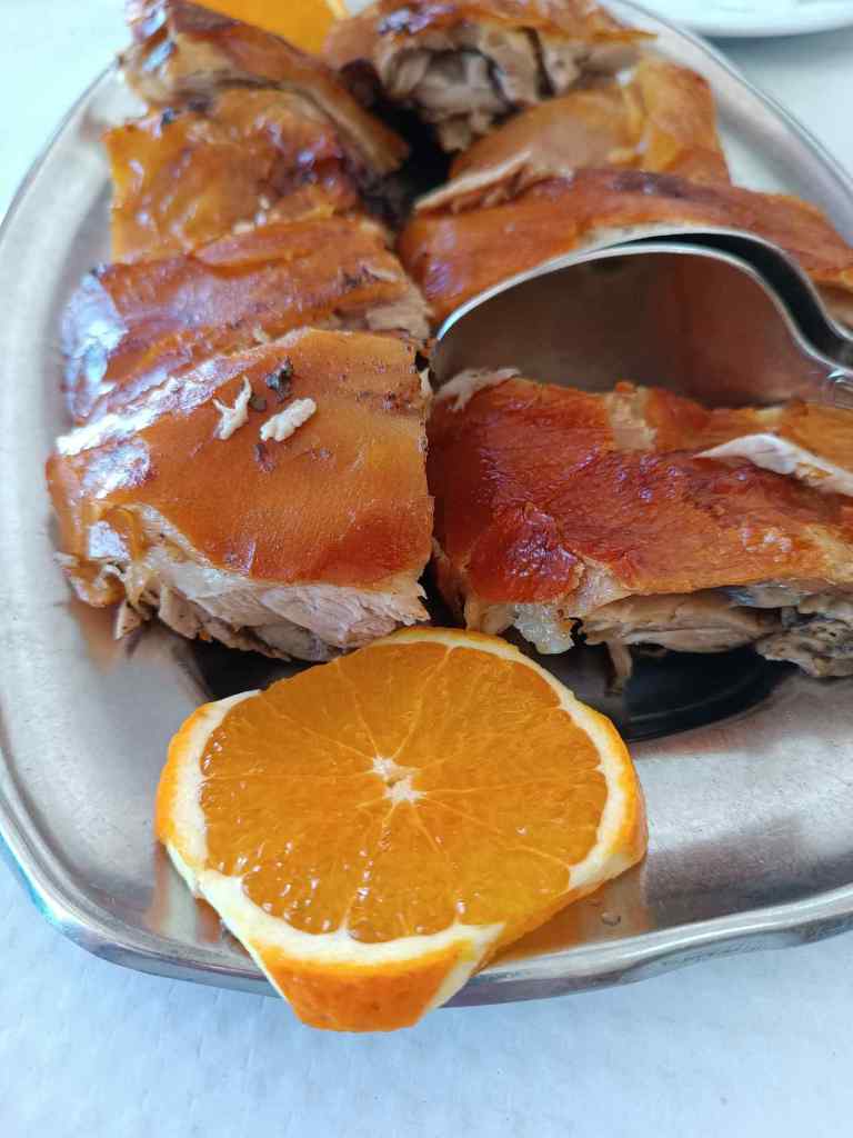 Die Gegend hier ist bekannt für Spanferkel, also sind wir kurz nach Mealhada. Vor dem ersten Restaurant stand eine riesige Schlange und alle ohne Reservierung wurden weg geschickt, so auch wir. An der Straße haben wir dann aber noch eins gefunden.
