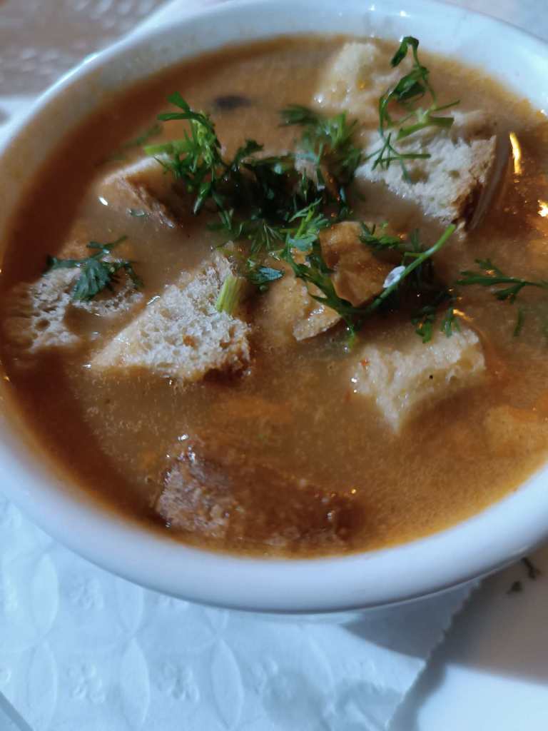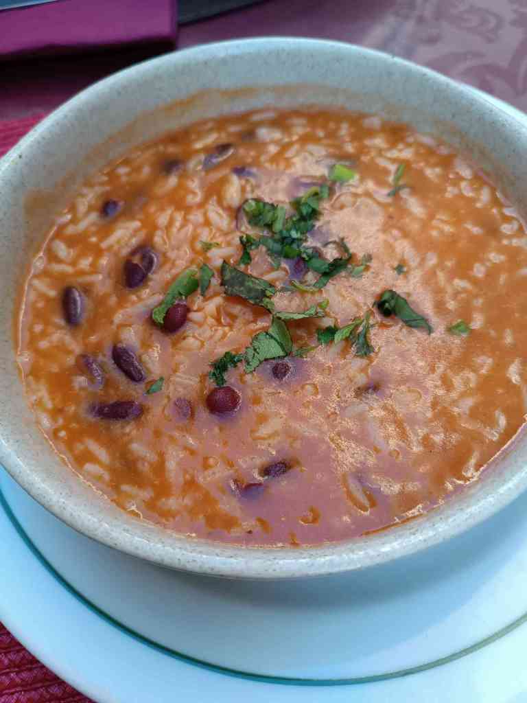 Bacalao Frikadellen und Reis/Bohnensuppe. Das war interessant und gut. Fischsuppe, die ihren Namen eher nicht verdient hätte. Insgesamt fühle ich mich hier sehr abgezockt
